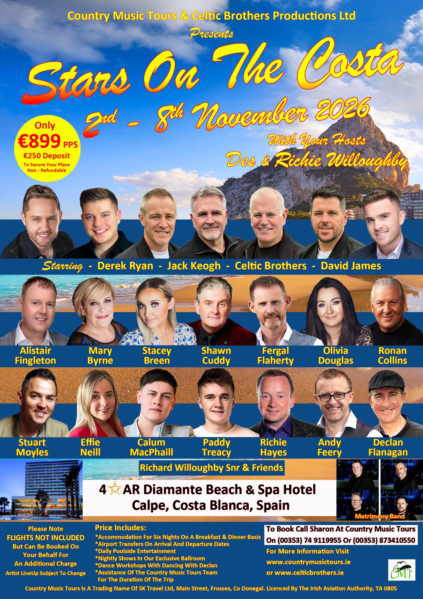 Having recorded four albums as the six-piece Willoughby Brothers, the now refined four-piece Celtic Brothers comprises of Robbie, Des, Johnny and Richie whose unique and recognisable sound which includes a repertoire featuring a blend of Irish ballads, popular classics and contemporary songs that take their audience on an emotive musical journey. ‘’Touring as six brothers became difficult over this past 18 months’’ said Des Willoughby, with it not always being possible to have everyone available due to other work and family commitments. With four of us now we have more flexibility and are excited about the future.